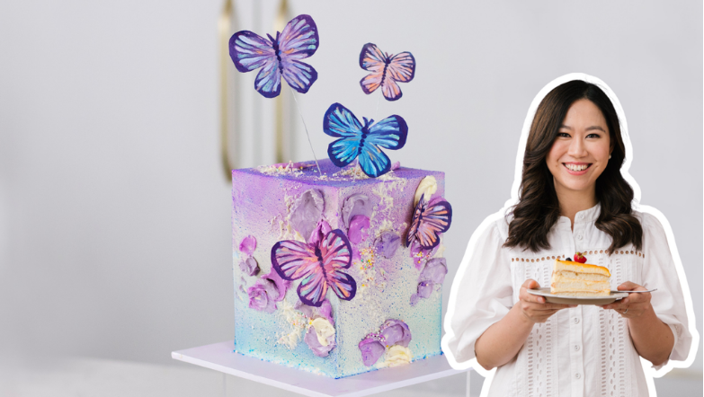 Learn how to stack, fill, cover and decorate a buttercream cake to perfection in this beginner-friendly, 2-part Masterclass